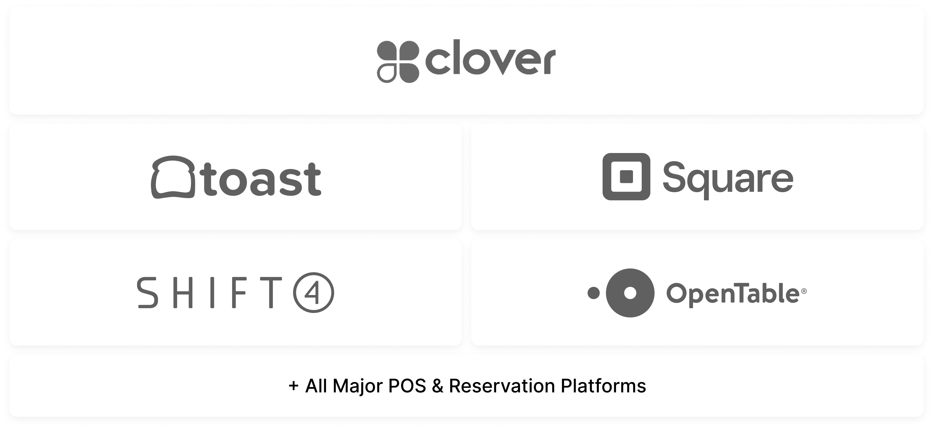Plug into your existing systems in minutes. Maple AI connects with leading POS systems, reservation platforms, and delivery services without disrupting your workflow.